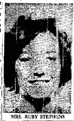 Ruby Louis Stephens was pregnant and recently wed to an Air Force sergeant, James Stephens. Her husband returned home from work on August 31, 1966, to find her on her back on the floor, a telephone cord wrapped so tightly around her neck that the firefighters had extreme difficulty cutting it off.